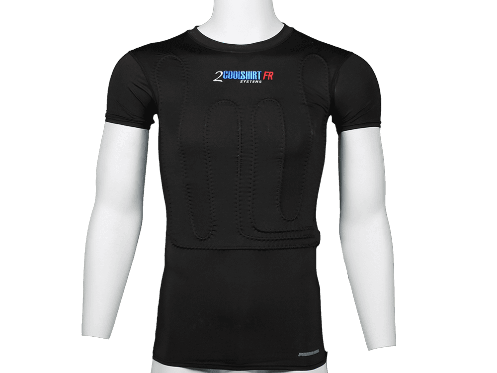 The COOLSHIRT ® 2Cool FR contains approximately 50 feet of industrial grade capillary tubing securely stitched on the front and back of the shirt. It is connected to a compact cooling unit via insulated hose with quick, dry disconnects (sold separately). The cooling unit contains ice, water and an internal pump that supplies cool water to the vest as it covers up to 40% of the body
