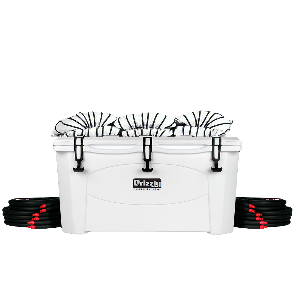 The COOLSHIRT Pit Crew system is built around a 75 quart heavy-duty cooler to ensure that you stay cooler for a longer period of time. The cooler incorporates a water port panel that allows for up to 6 connections and also features a dual pump system for enhanced efficiency. Each connection uses our dry-break safety pull release system so that the lines will pull loose when 21lbs of force is applied. This is a great safety feature in the event that someone forgets to disconnect from the system. The system also includes 6 premium fire retardant, moisture-wicking short sleeve shirts (sizes S-XXXL) and twelve 12? safety pull hoses. This system is built to be rugged enough to operate in the harsh environments of pit road.
