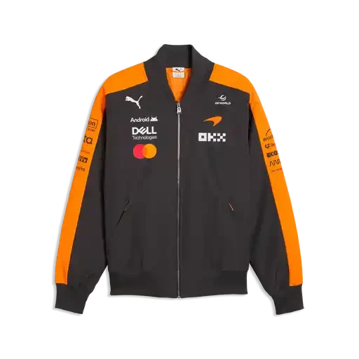 Experience the thrill of Formula 1 with McLaren's iconic 2026 Team Bomber Jacket in striking papaya. Crafted for fans who demand authentic motorsport style, this premium jacket captures the energy and prestige of the McLaren F1 team. The bold papaya colorway makes a statement whether you're trackside or on the street. Built with quality construction and attention to detail, it's the perfect piece for collectors and racing enthusiasts who want to wear their passion. Own a piece of McLaren's legacy today.