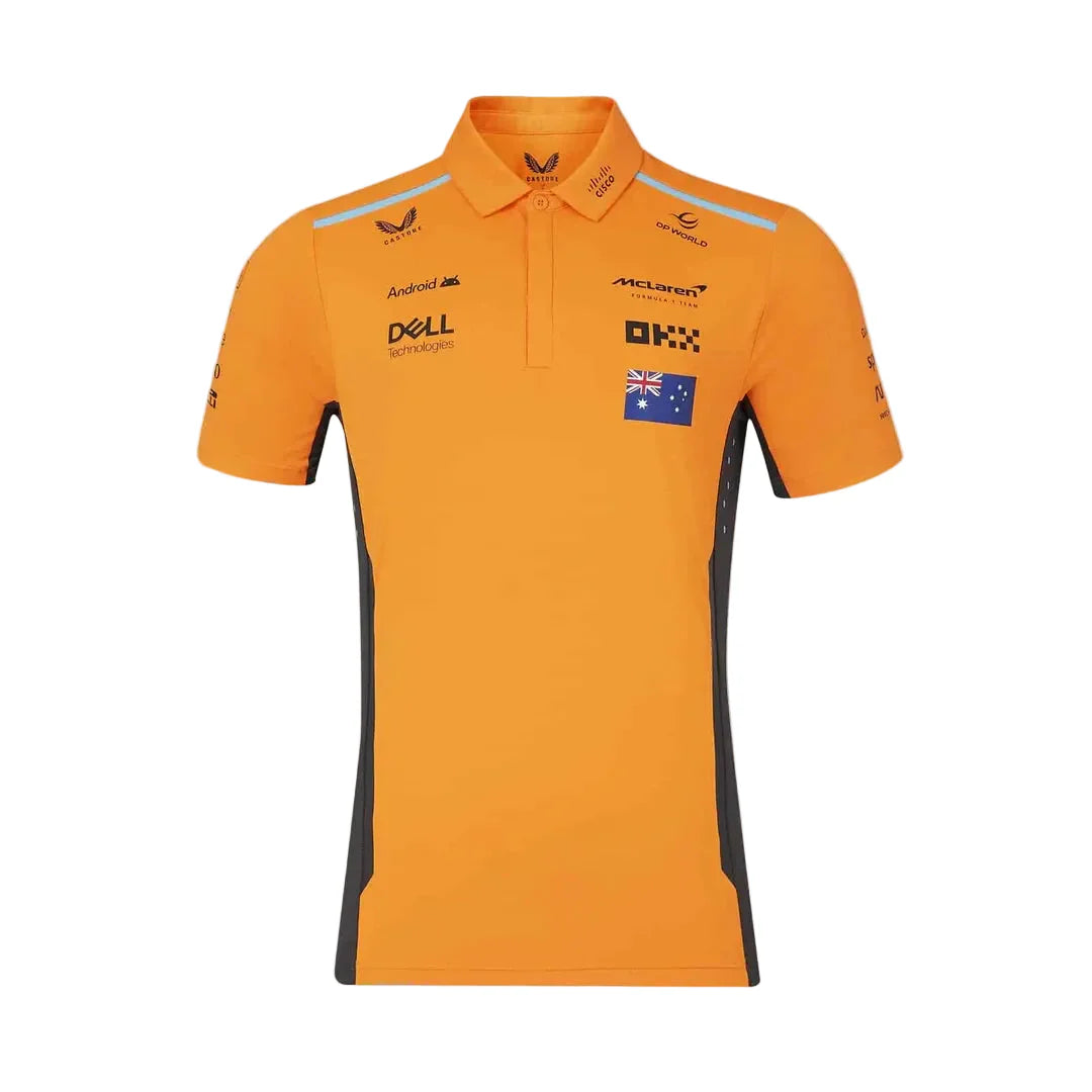 This Men’s Oscar Piastri Official McLaren F1 Team Polo Shirt is a limited edition piece celebrating one of Formula One’s most promising talents. The classic driver Polo Shirt features a sleek pointed collar and concealed placket fastening for a smart look. The mesh panel at the back and underarm ventilation ensure a fresh feel for optimal comfort during tense races.