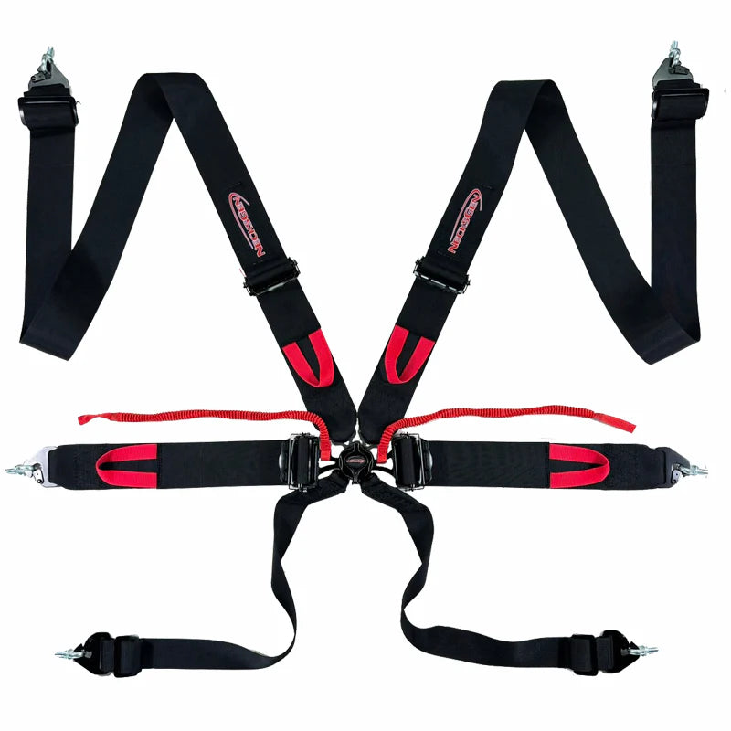 All sets come only in 6 point! Why 6 point? Safety. With more and more sanctioning bodies requiring 6 point harnesses, we're staying ahead of the curve and offering it at no extra cost. 6 point harnesses are much stronger because the 5th point crotch has always been the weakest link, and add to that, 6 point is much more comfortable on your pelvis.