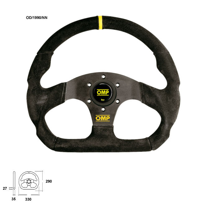Flat steering wheel with 3 anodized spokes and suede leather crown with flat bottom design to facilitate entering and exiting the car. Very anatomical handgrip offering the best grip while driving. Complete with horn button.