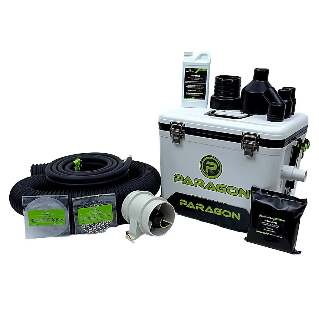 Paragon’s Viking Pro Bundle – 18L is assembled as a complete all in one kit. The Paragon Viking Pro Bundle – 18L is perfect for endurance races where maximum cooling is a top priority. The bundle includes all necessary Paragon offerings to cool the head and core when paired with a Paragon cooling garment. The Paragon Viking Pro Bundle includes Viking Pro 18L – 12v, Viking Tray 18L, two Viking Tray Straps, 8ft Guardian Hose, Blower Air Filter, Blower Air Filter Screen, 16 oz Defense Solution, 1.25” Air Hose-10ft., 3” Air Hose – 5ft, 240 CFM Blower, two 1.25” Hose End Fittings, Angled Helmet Fitting, 4” Blower Hose Fitting, 4” Blower Filter Housing Fitting and Everlast Ice.