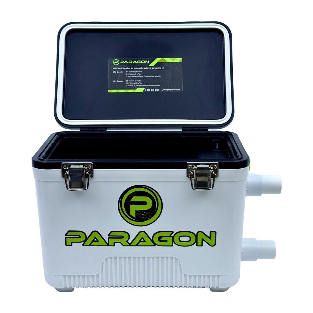 Paragon’s Viking Pro Cooler is the amped-up version of the Viking Cooler. The Viking Pro Cooler is built to be durable and efficient with its 12-volt pump providing constant circulation of cold water through Paragon cooling garments. The addition of a u-shaped aluminum air tube inside the cooler, designed specifically for helmet cooling, when connected to a blower system, is what makes this Paragon’s Pro version. The side exit Guardian bulkhead connectors are Paragon’s emergency release option allowing an easy disconnect when a quick pull motion is applied to the connected hose set or garment. The Viking Pro Cooler is available in a 12L or 18L option and works seamlessly with most cool suit brands.